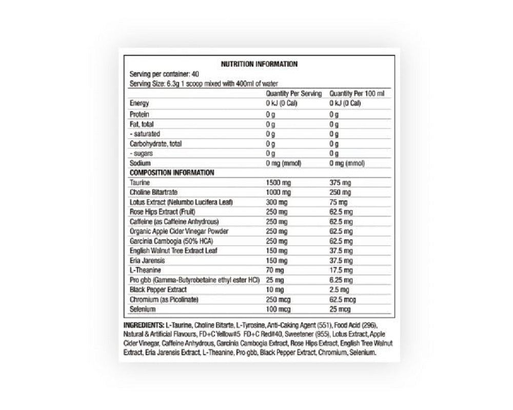 Taurine - The health benefits of taurine are far reaching but we have included it mainly for its endurance and fat burning benefits. Many studies and literature show taurines ability to burn fat both solo and with other natural ingredients. One study using 3 grams per day for 7 weeks reduced body weight significantly in a group of overweight adults. Additionally, supplementing has been found to reduce inflammation and artery thickening. When combined, these effects may drastically reduce your risk of heart disease