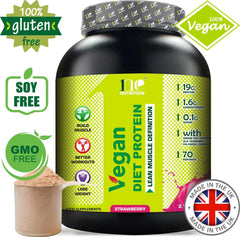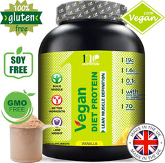 Introducing an amazing new product from 1ne Nutrition Vegan Diet Protein. If you are looking to lose fat but have lactose problems or just want a change from diet products made from whey or milk proteins, look no further than1ne Vegan Diet Protein. 1ne Vegan Diet Protein is made from pea and rice protein isolates with added fat burning ingredients such as Green Tea Extract, L-Carnitine, and many more to help shift stubborn fat. With 18.1g of protein and ONLY 0.1g of sugar per serving, this makes 1ne Vegan Diet Protein an ideal alternative to whey and milk protein diet powders.