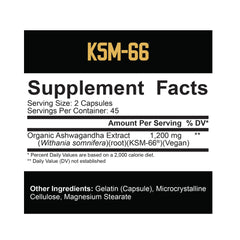 | Organic Ashwagandha Extract (Withania Somnifera)(root)(KSM-66)(Vegan) | 1200mg |