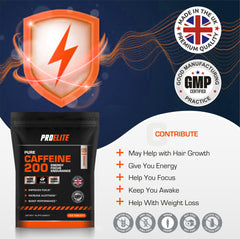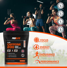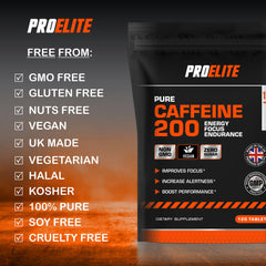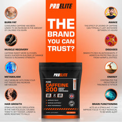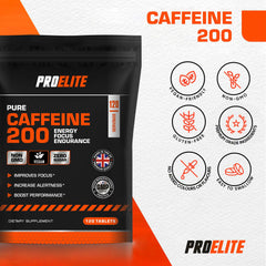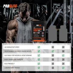 PROELITE Caffeine tablets contain pure, high strength caffeine for optimal mental drive strength and thermogenic support.