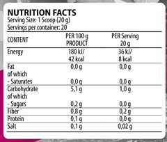 | Supplement Facts | Per 20g Serving | Per 100g |