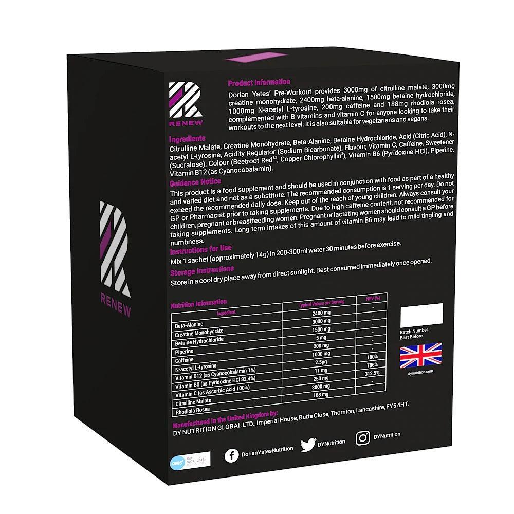 Dorian Yates’ Pre-Workout provides 3000mg of citrulline malate, 3000mg creatine