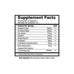 Using both existing proven ingredients as well as market-leading, cutting edge compounds. This product is not for beginners or for people sensitive to stimulants, this product is only for the hardcore athlete looking to take both their workouts and fat burning to the absolute extreme.