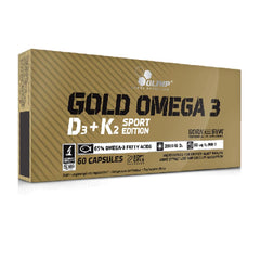 A dietary supplement with a high content of omega-3 with vitamins D3 and K2. Premium fine concentrated cold-water fish oil with a 65% standardised content of omega-3 fatty acids supplementing the diet with essential omega-3 fatty acids. Gold Omega 3® D3+K2 also contains a high amount of natural vitamin K from natto, featuring in its most digestible and active form - menaquinone-7 (vitamin K2). The product has been supplemented with 2000 IU of vitamin D (D3).