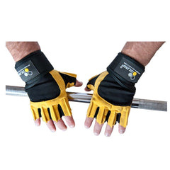 Exclusive training gloves with wrist reinforcement, made from the finest quality suede. The special fibers give improved elasticity between the fingers. The hand area is padded with soft foam. Gloves have double seams in places, which are sensible for stretching. Perforated leather on three fingers lining provide better ventilation during heavy exercise. The self-fastening regulated double belt with velcro provides ideal fitting profiled with special anatomical shaped seams.