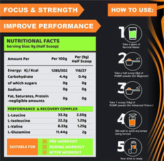 To reap the benefits of our BCAA powder add half scoops (9g) to 250-350ml of water or juice in a PROELITE shaker before, during and/or after exercise. Consume 1-3 servings per day.