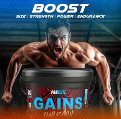 Elevate your muscle-building and weight gain efforts with PROELITE GAINS. Embrace the power of this ideal formula and experience noticeable progress on your fitness journey. Don't miss the opportunity to take charge of your goals – try it now and witness the transformation first-hand!