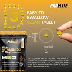 PROELITE Vitamin D3 softgels are a specific, high-strength form of vitamin D, which promotes normal bone health and contributes to the maintenance of healthy immune function, as well as playing a role in cell division.