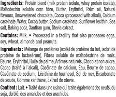 Ingredients: PROTEIN BLEND (MILK PROTEIN ISOLATE, WHEY PROTEIN ISOLATE), BUTTER (CREAM, NATURAL FLAVOR), POLYDEXTROSE, MACADAMIA NUTS, CALCIUM CASEINATE, PALM OIL, WATER, ERYTHRITOL, COCOA BUTTER, GLYCERIN, NATURAL FLAVORS. CONTAINS LESS THAN 2% OF THE FOLLOWING: SODIUM CASEINATE, LECITHIN (SUNFLOWER, CANOLA, AND/OR SOY LECITHIN), SALT, BAKING SODA, XANTHAN GUM, SUCRALOSE.