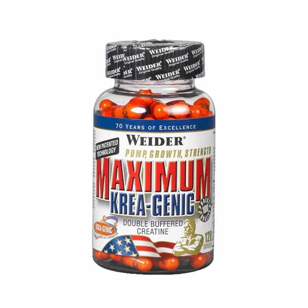 Weider Maximum Krea Genic is a new form of creatine which unlike ordinary buffered creatine, has two buffers. The first buffer protects the creatine against the degradation by stomach acid and the second buffer ensures the undamaged transport through the blood into the muscle cells.